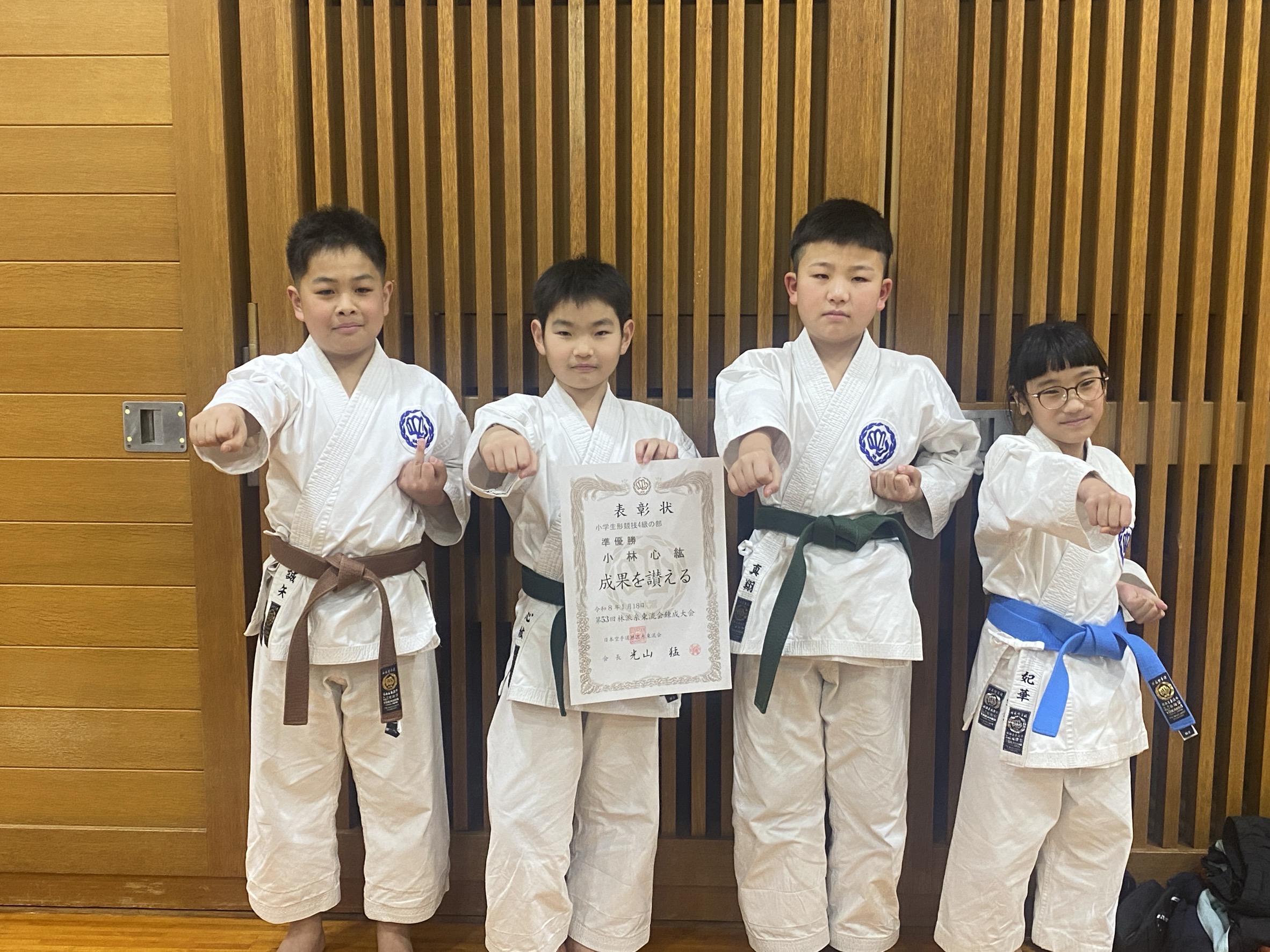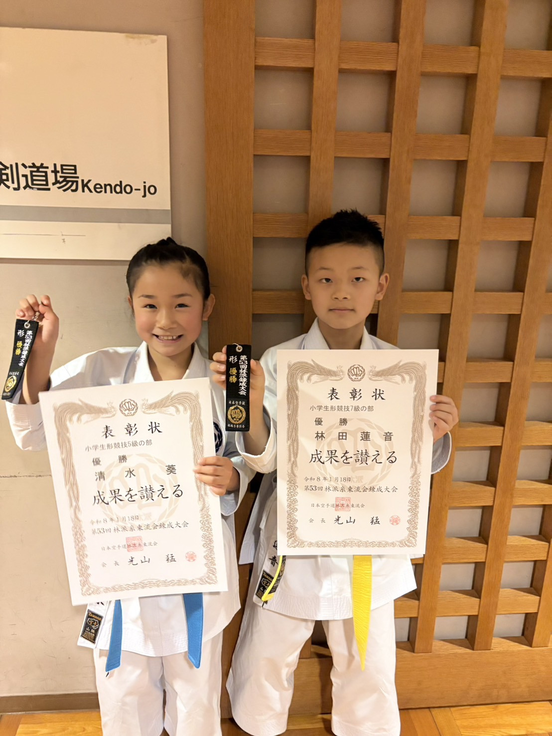 清水 葵 小学2年生女子形 優勝 全日本少年少女大会 近畿少年少女大会 出場決定水畑 喜雄 小学4年生男子形 3位 近畿少年少女大会 出場決定
